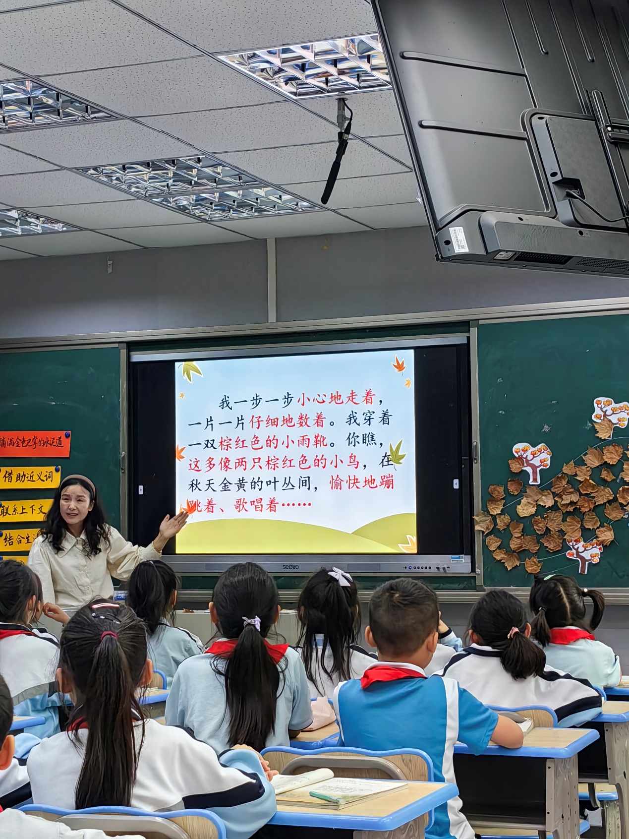 在图书室出来的平台上,我们深吸一口桂花的香气,远眺整个凤凰城,感到愉悦又宁静,在这里读书该有多幸福!在科技楼我们听了一堂三年级的语文公开课,谁曾想还能自己回到童年课堂,仿佛做了一个铺满金色落叶的梦。