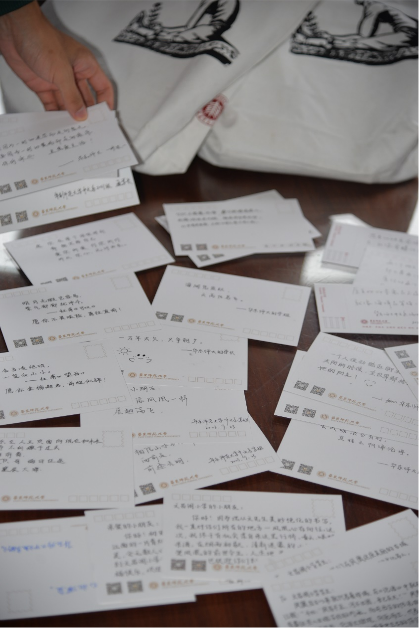 同学们起立说完“老师休息”后,大家鱼贯而出。下楼梯的时候,可以看到操场上的孩子们已经上起了体育课,他们正欢快地跑着,真像童话一样。来自华东师大的大哥哥大姐姐们为他们准备了小礼物,还在明信片上写下了温暖的祝福,愿这些祝福都一一实现吧!