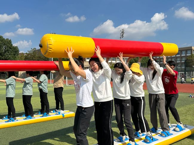 团体项目中,中文系运动员齐心协力,共赴挑战,充分展现出中文学子团结一心,携手并进的品格。在接力比赛中,手中紧握的接力棒是不断传递的希望;阳光伙伴比赛,三十人组成的长队稳步前进,有力的口号引领前进的节奏;拔河比赛,一双双手紧握长绳,额头上滑下的汗珠见证运动员的努力;混合短绳比赛,轻盈的身影跃过飞舞的绳间,中文系代表队最终获得第八名的好成绩。
