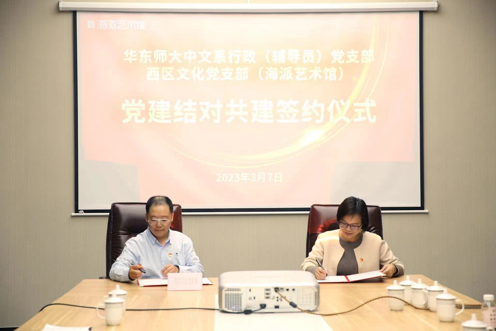 为共同促进院校与海派艺术馆的融合与协同发展,分享美育合作交流经验,2023年3月7日, 自慰视频 中文系行政(辅导员)党支部与闵行区西区文化党支部(海派艺术馆)联合开展主题党日活动,共议基层党建结对,引领“海派”美育新风尚。西区文化党支部书记潘齐、华东师大中文系党委副书记、行政(辅导员)党支部书记徐燕婷等参加。