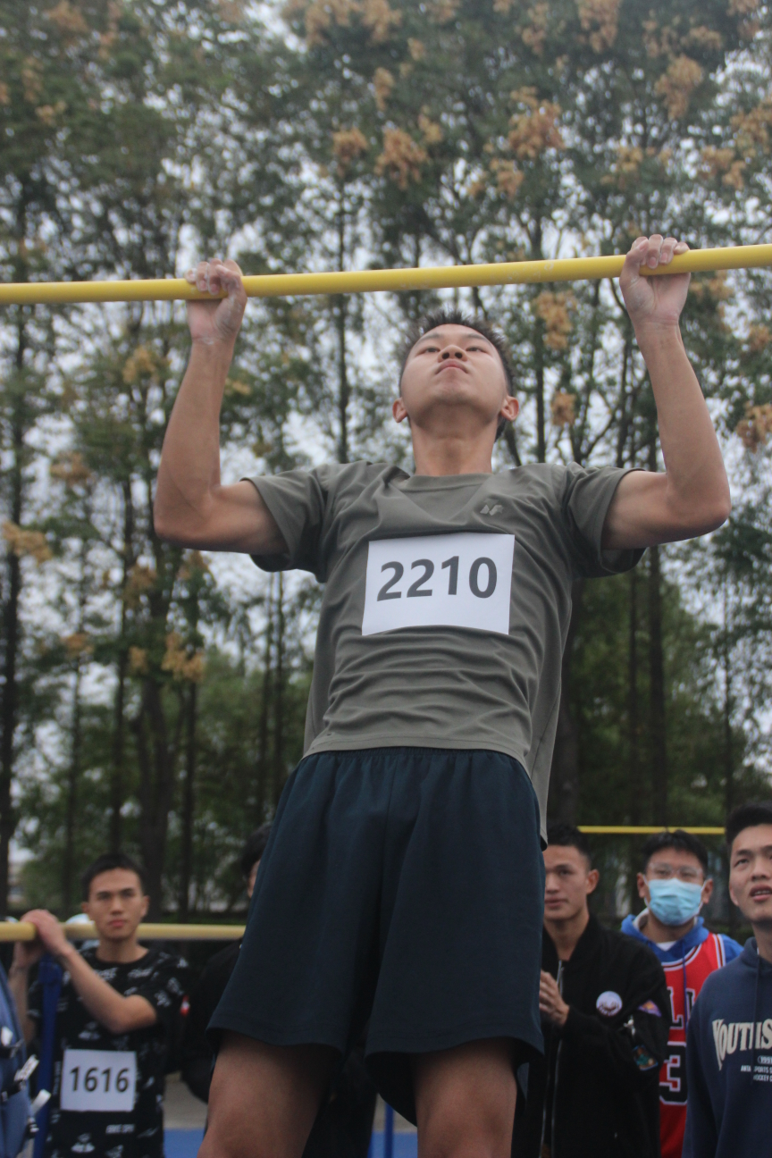 田赛中,参赛选手也毫不逊色。他们或是咬牙坚持,或是引臂而起。最终陈贝宁同学在仰卧起坐中位列第三;汪煜同学在引体向上项目中取得了第七名的成绩。